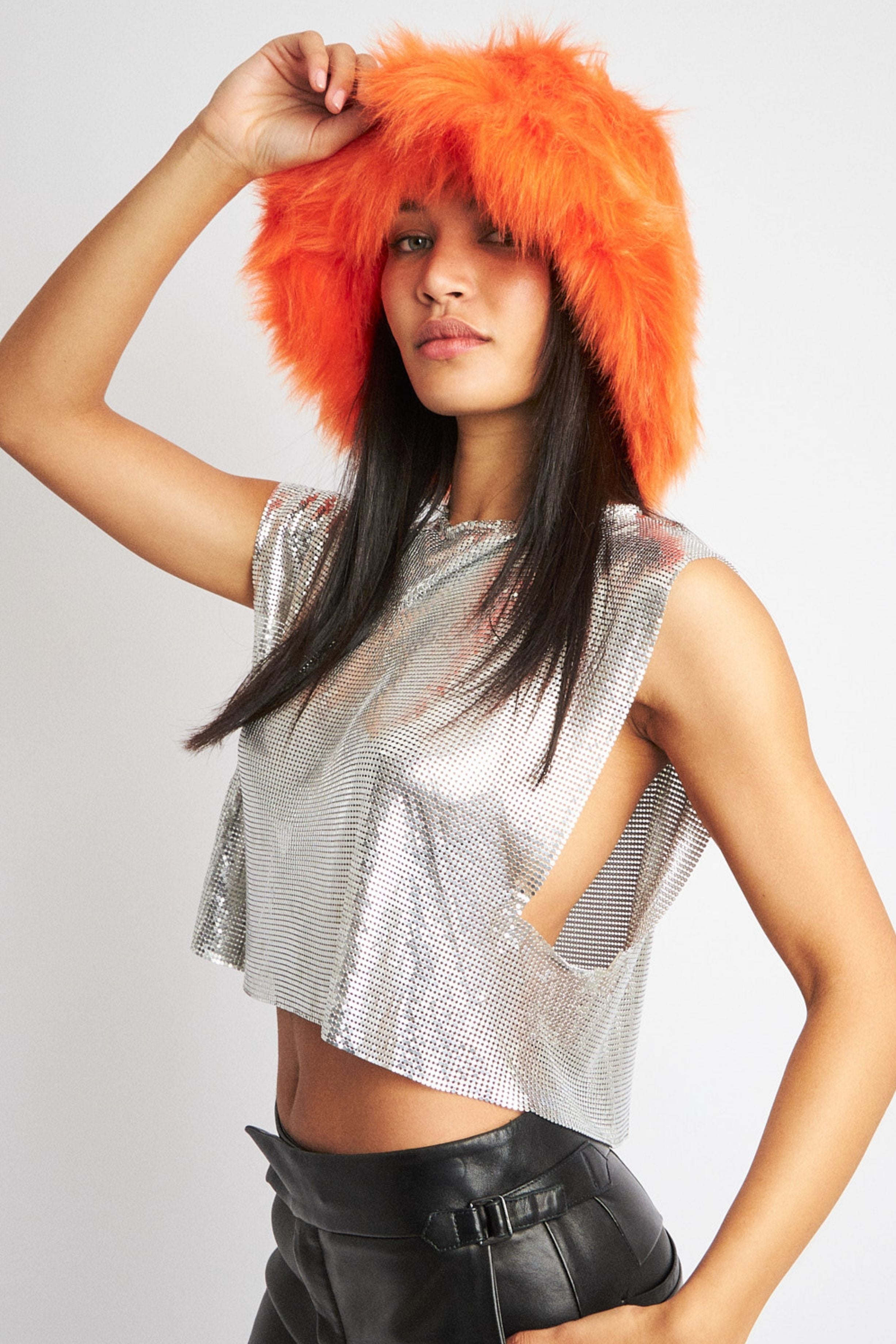 With its irresistibly soft texture, this furry hat is the ideal finishing touch to any look. Designed to offer warmth and complement any wardrobe, from casual outdoor wear to evening attire.