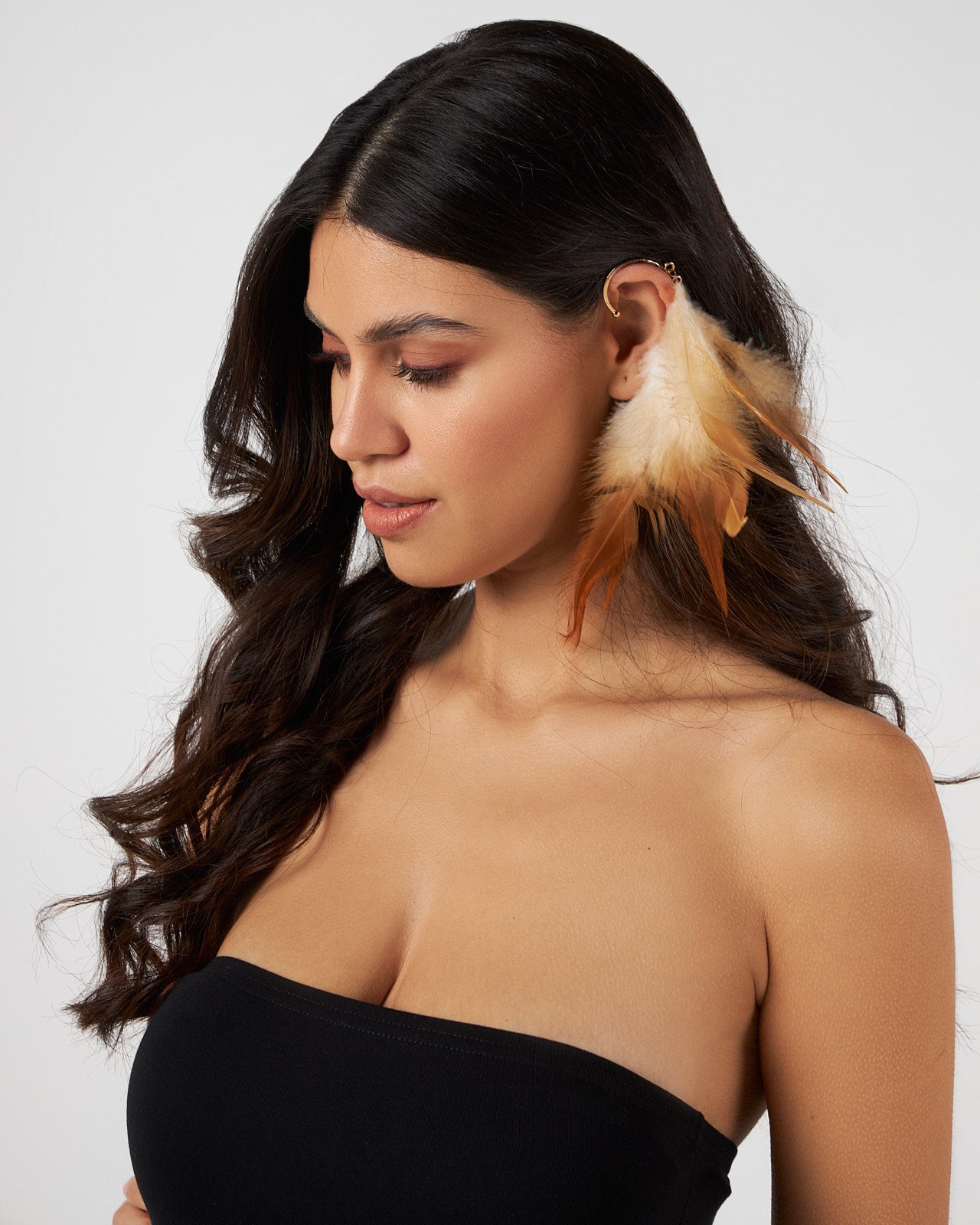The Naima feather ear cuff is a unique accessory that will enhance your outfit.