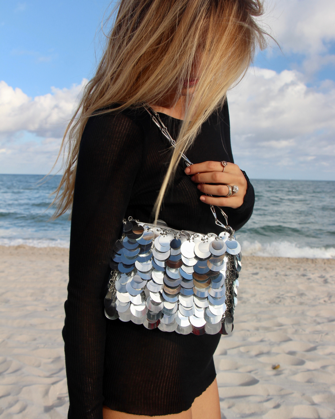 • All-over mirrored paillette embellishments